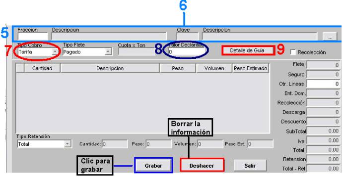 Una vez capturados todos los datos y que han sido agregados los detalles en la guíadará clic en Grabar para guardar los datos de la misma.