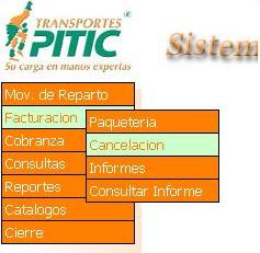 | Despues de entrar al Sistema de Pitic Light Seleccionar en el menu "Facturacion" y postermente dar clic en "Cancelacion". | |
