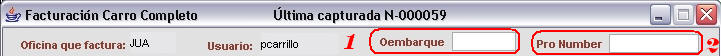 que capturar la orden de embarque (1) en el cual sólo se podrán escribir 6 dígitos.