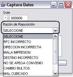 en la cual deberá capturar la guía a reponer y seleccionar la razón.