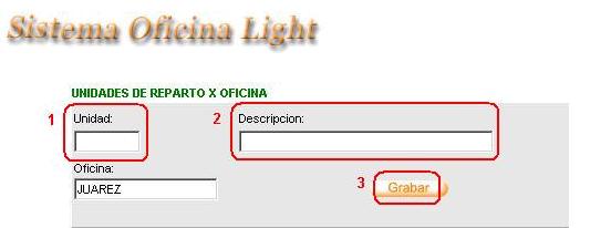 Registrar las unidades utilizadas para reparto en la oficina y asignarles su clave correspondiente.