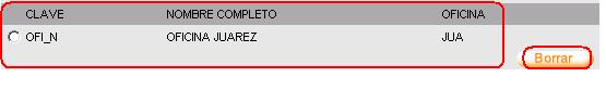 II. En el cazo de que todo se haya realizado correctamente en el área de despliegue de información aparecerá el nombre de la oficina correspondiente con su clave y descripción.