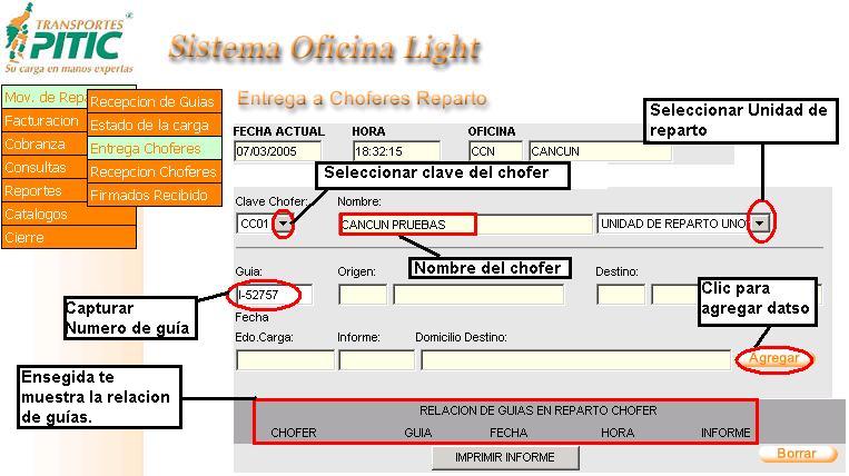 Una vez que la carga ya ha sido recibida y que se ha determinado el estado en le que ésta fue recibida, es asignada a un chofer para que este se encargue del reparto de la misma.