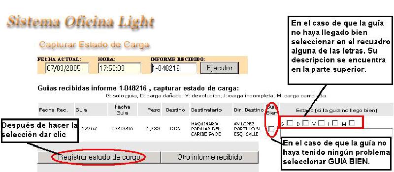 4- En el caso de que al carga haya llegado bien solo seleccionarás GUÍA BIEN.