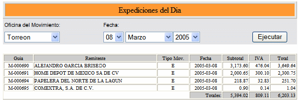 Listar todas las guias expedidas en la fecha actual o en cualquier fecha seleccionada.