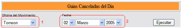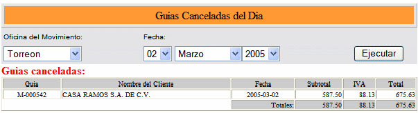 Listar todas las guias canceladas en la fecha actual o en cualquier fecha seleccionada.