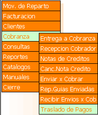 Ingresar al Sistema de Oficinas Light, seleccionar del menú que presenta el sistema la opción cobranza, la cual desplegará un submenú en el que se encuentra Traslado de pagos. Este sistema permite trasladar pagos de una guía a otra